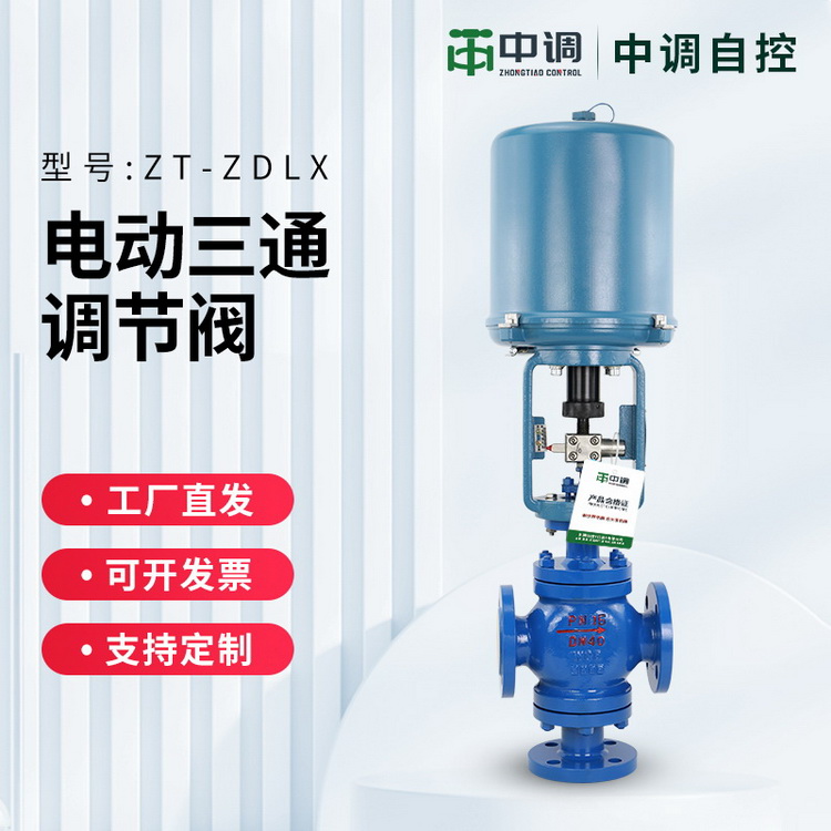 电动三通调节阀,是由直行程电子式电动执行机构和采用圆筒型薄壁窗口形阀芯的三通合流(分流)阀组成。