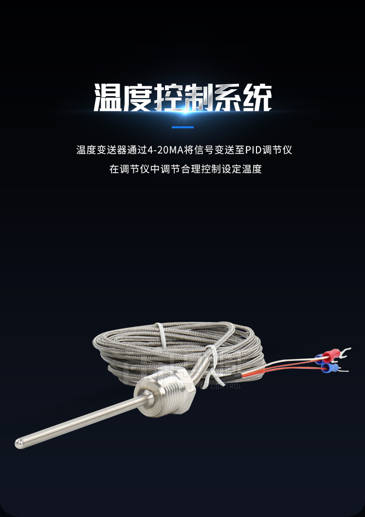 温度变送器通过4-20mA将信号变送至PID调节仪在调节仪中调节合理控制设定温度