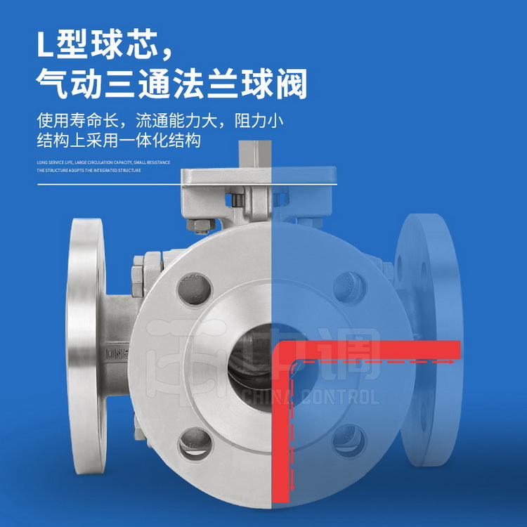 在全开或全闭时,球体和阀座的密封面与介质隔离,介质通过时,不会引起气动三通球阀密封面的侵蚀